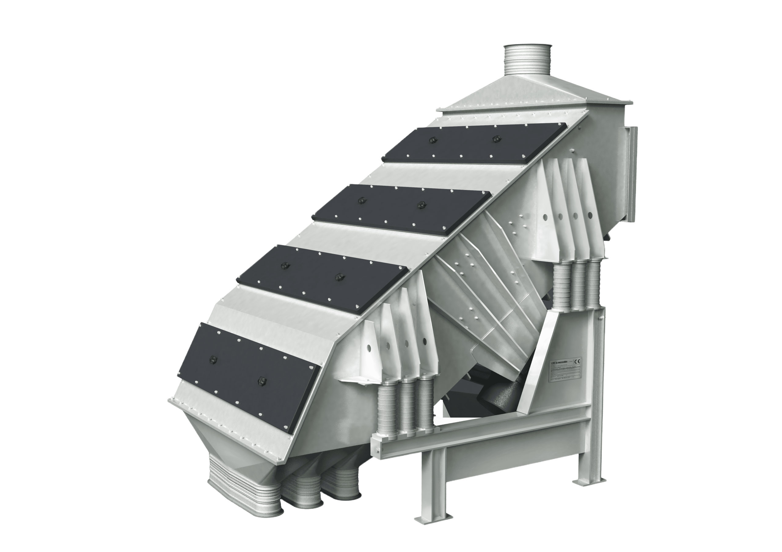 Siebe werden verwendet, um die unerwünschten oder größeren Kornteile des Produkts von der richtigen Größe zu trennen. Es handelt sich um sehr kompakte Maschinen. Im Schwingsieb La Meccanica wird das Produkt am Siebeingang über die gesamte Arbeitsbreite mit einem statischen Verteiler verteilt, der von außen verstellbar ist. Der mechanische Antrieb des Siebes erfolgt durchzwei Vibromotoren, die unten am Kasten angeordnet sind und somit den Zugang zu den Gegengewichten erleichtern.